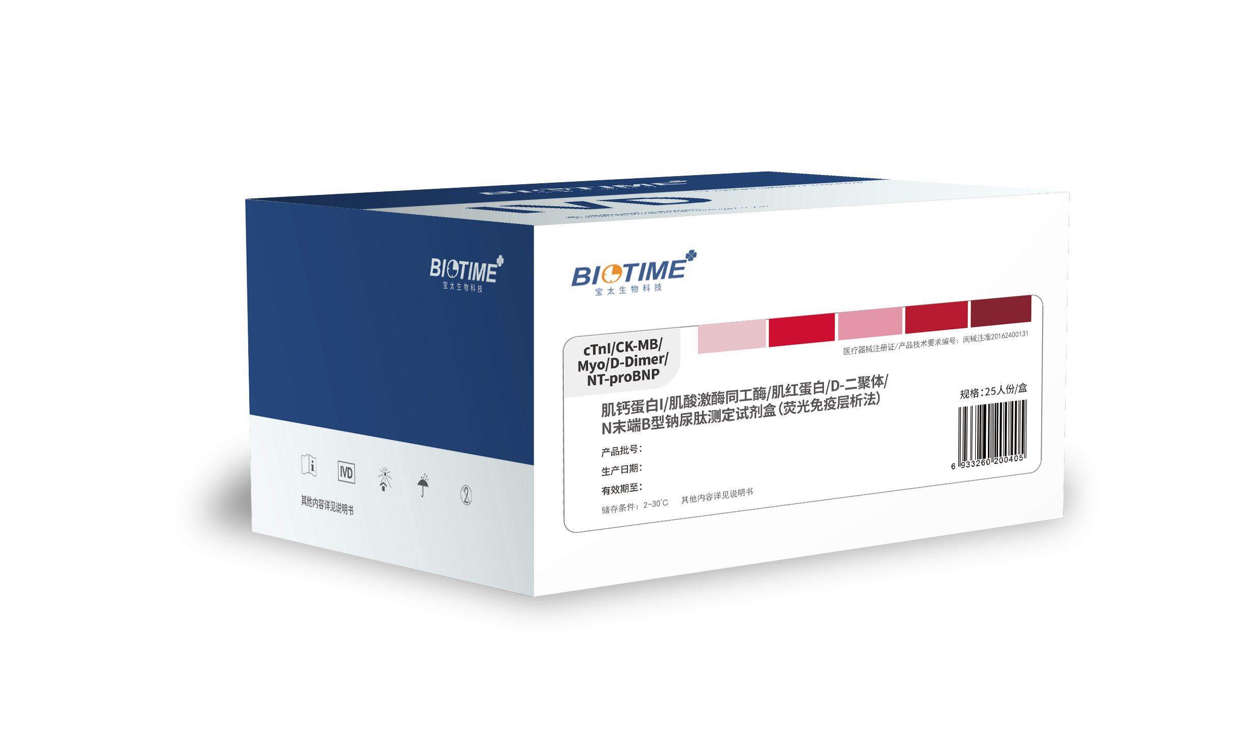 肌鈣蛋白I/肌酸激酶同工酶/肌紅蛋白/D-二聚體/N末端B型鈉尿肽測(cè)定試劑盒(熒光免疫層析法)